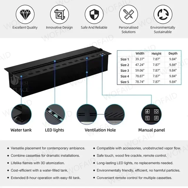 Камин с водяным паром, только чистая вода, поэтому его нет риск огня, что сравните с традиционными деревянными и газовыми каминами, а также пламя можно касать и не подходит любое опасности для детей или домашних животных.Это 100% камин без пожарных.