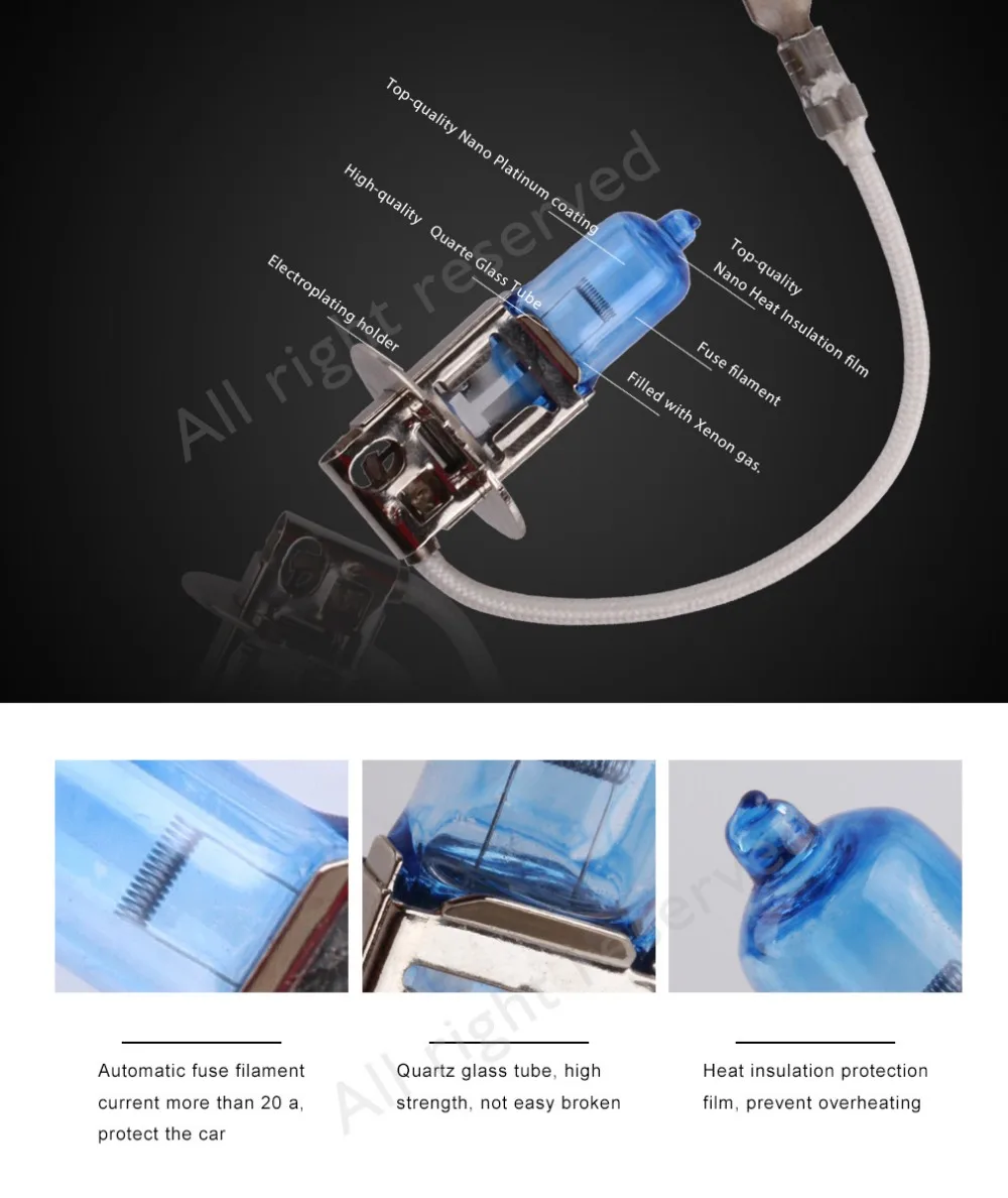 Супер яркие галогенные лампы H1 H3 H4 H7 H11 9005 HB3 9006 HB4 55 Вт 100 Вт 12 В 5000 К Автомобильные фары Противотуманные фары дальнего света Белый