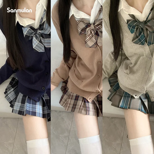 В комплект входит: 1*кардиган, 1*рубашка, 1*юбка в клетку, 1*бант.